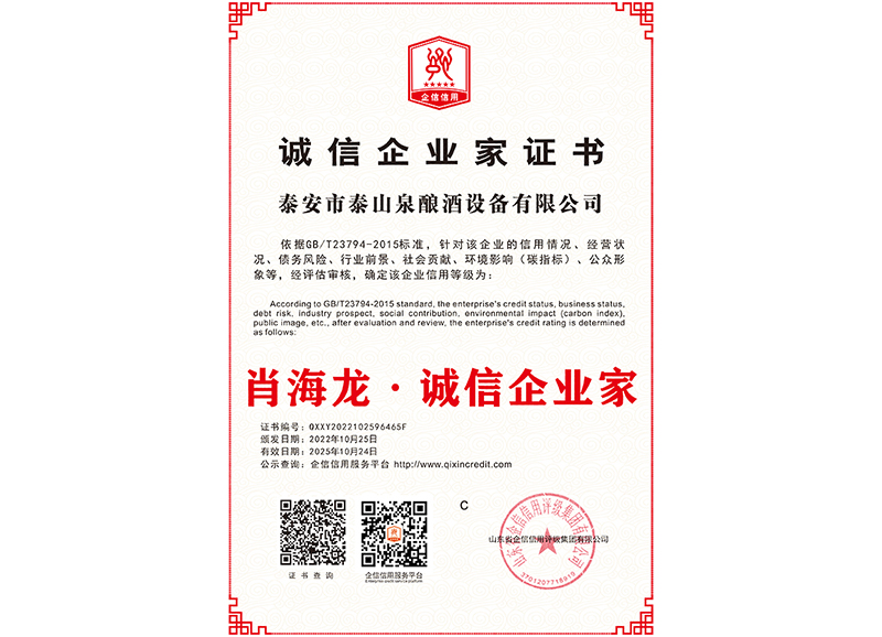 泰安市泰山泉釀酒設(shè)備有限公司,是一家專業(yè)從事釀酒設(shè)備機(jī)械化研發(fā)并集技術(shù)咨詢,工程設(shè)計(jì),制造安裝,人員培訓(xùn)及售后服務(wù)為一體的綜合性企業(yè),本公司主要產(chǎn)品為:大曲清香、小曲清香、大曲醬香、大曲濃香等香型白酒機(jī)械化設(shè)備。 本公司與中國科學(xué)院自動化研究所簽訂技術(shù)服務(wù)合同,引進(jìn)先進(jìn)技術(shù),研究生產(chǎn)全自動化機(jī)械釀酒設(shè)備,由中國科學(xué)自動化研究所的技術(shù)支持,打造最先進(jìn)的生產(chǎn)釀酒設(shè)備,公司有信心打造全國最先進(jìn)白酒...